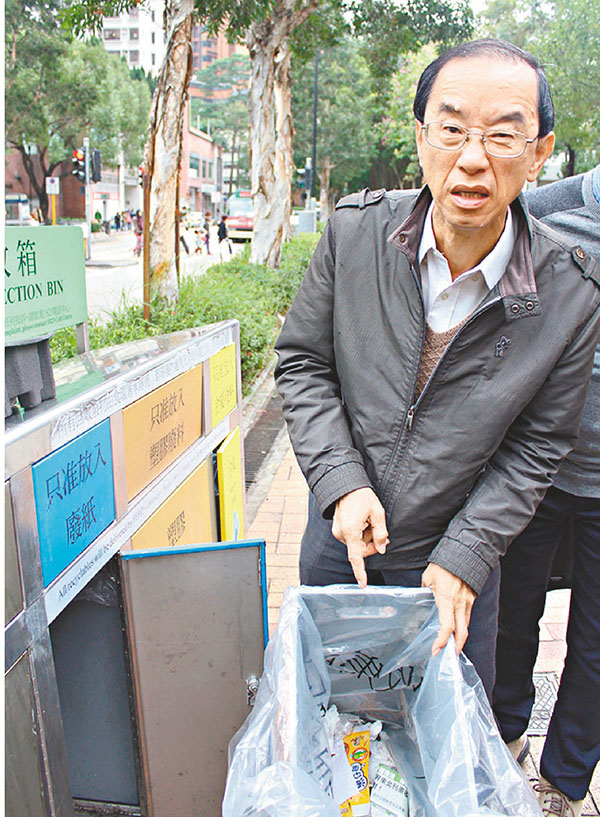 香港文匯報訊(記者 莊禮傑)「藍廢紙,黃鋁罐,啡膠樽」,朗朗上口的口號喚起市民的回收意識,但未必人人知道回收物也要乾淨。環境運動委員會成員昨日視察本港廢物分類回收情況,發現路邊三色箱回收成效差,廢紙箱內充斥其他垃圾,塑膠回收箱內也有喝剩的飲料。委員會主席林超英呼籲,市民要養成乾淨回收習慣。