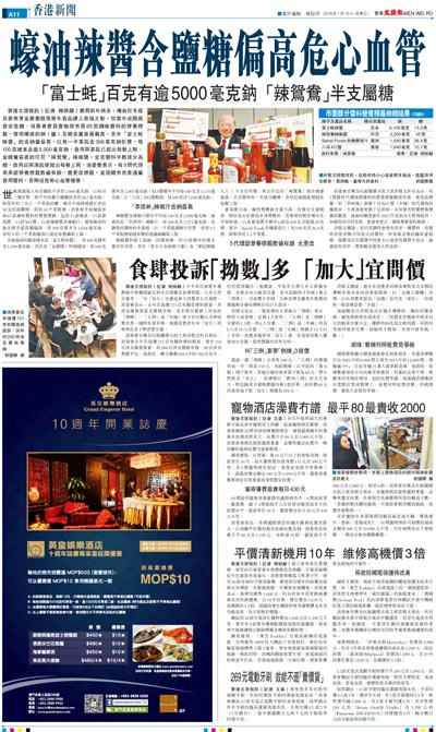 香港文匯報訊(記者 楊佩韻)農曆新年將至,蠔油炆冬菇及香煎黃金蘿蔔糕等賀年食品讓人食指大動,但當中或隱藏食安危機。消費者委員會檢視市面65款調味醬料的營養標籤,發現蠔油的鈉(鹽)及糖含量普遍偏高,其中「富士蚝味醬」的含鈉量最高,以每一平茶匙含306毫克鈉計算,每100克樣本含逾5,000毫克鈉,食用兩茶匙已超出每餐上限。含糖量最高的印尼「辣鴛鴦」辣椒醬,全支醬料半數成分為糖,食用近兩湯匙便超出每餐上限。消委會表示,有5間代理商承認營養標籤數值有誤,會更改標籤,並提醒市民要適量食用醬料,否則或危害心血管健康。
