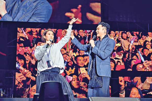 香港文匯報訊 張智霖(Chilam)前晚在廣州舉行演唱會。Chilam除不時在台上脫去外套大晒麒麟臂,他又與性感舞蹈員跳辣舞,讓在場觀眾尖叫連連。Chilam太太袁詠儀(靚靚)當晚擔任表演嘉賓,她上台大爆以為老公記得《未婚妻》的歌詞,當時令她很感動,誰知原來Chilam竟是睇字幕的。