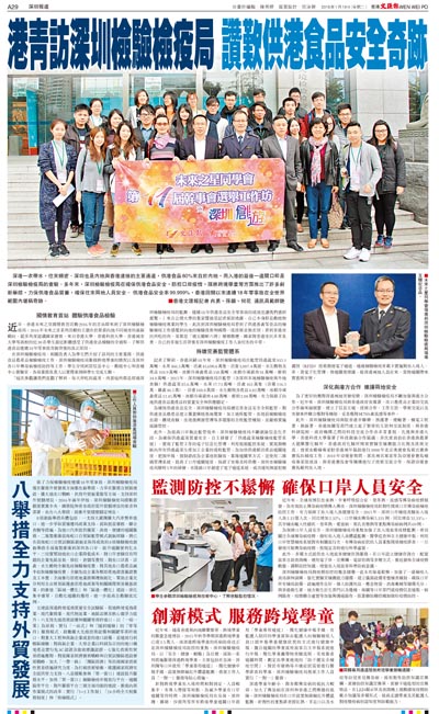 「這次參觀讓我們直觀了解到,每天所吃的蔬菜、肉蛋這些都是經過深圳檢驗檢疫局的監測,連續18年供港食品安全零事故的成效也讓我們感到震驚。」來自公開大學的葉家豐接受記者採訪透露,自己本身即是動植物檢驗檢疫專業的學生,此次到深圳檢驗檢疫局看到了供港畜禽等食品的檢驗檢疫工作感覺到內地的檢驗技術和國際一流技術並無差別;看到香港市民所吃的肉、菜都是「過五關斬六將」層層篩選,國家對香港市民非常負責,自己的幸福生活背後有深圳檢驗檢疫工作人員付出的辛勞。