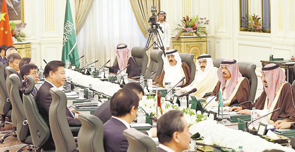 ■習近平同沙特阿拉伯國王薩勒曼舉行會談。 新華社