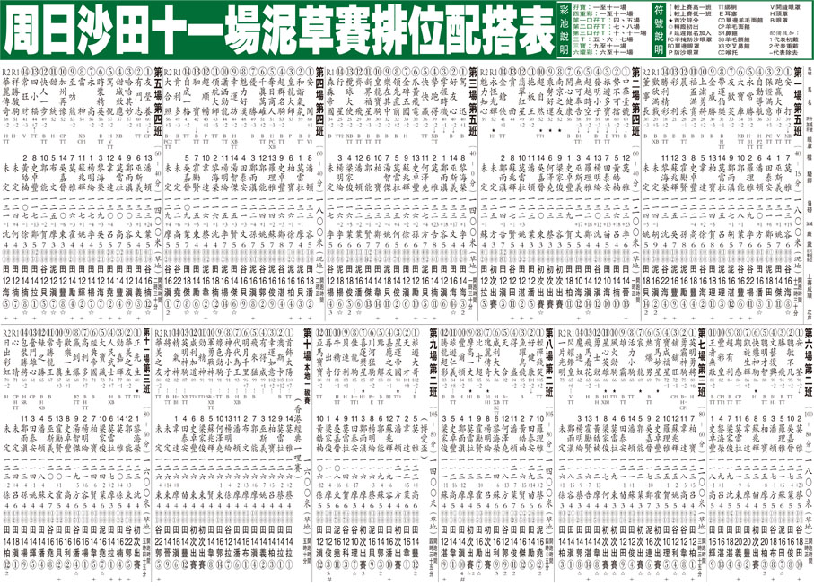 周日沙田十一場泥草賽排位配搭表 (2016-01-22) (圖)