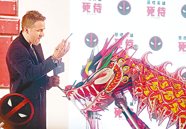 加拿大型男賴恩雷諾士(Ryan Reynolds)近日於台灣宣傳新片《死侍:不死現身》(Deadpool),他昨日現身台北文華東方酒店出席記者會。談起死侍角色,賴恩表示小時候愛運動,不愛看漫畫,直到電影公司高層拿原著漫畫給他看,就愛上死侍,後來電影公司人事異動,劇本被冷凍,他笑稱一直煩電影公司,才順利拍成。 提到死侍的紅色緊身衣,賴恩透露一開始要花45分鐘穿,還需要有人幫忙,拍到最後他花10分鐘就能穿好,他又表示如要拍續集,首先要改良死侍裝,因為每次想小便都要全脫,太浪費時間。提到片中有全裸傷疤戲,他說臉部傷疤妝要花4至6小時,全身則8至10小時,再加上拍攝時間,共花了26小時才完成。他又笑言認識死侍角色10年,自認是世上最了解死侍的人。此外,他在記者會為舞龍點睛。