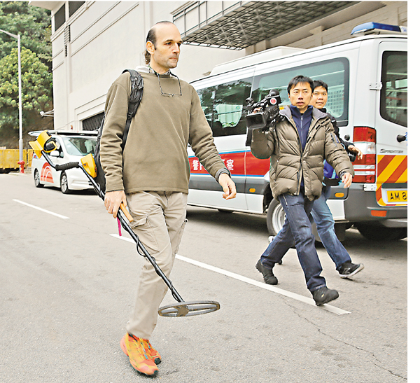 香港文匯報訊(記者 杜法祖)曾多次尋獲戰時炸彈、有「炸彈獵人」之稱的4名外籍「軍事迷」,昨日無懼嚴寒天氣,繼續帶備金屬探測器在港島布力徑「尋寶」,再次發現二戰時期日軍遺下的手榴彈及步槍子彈。警方爆炸品處理課人員到場,為安全起見將手榴彈及子彈就地引爆處理。