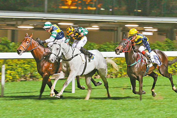 甚麼叫精采賽事?有人話一級賽,有人話低班馬大混戰,但蘿蔔青菜各有所愛,那管中下班次,好看便是,看早前夜賽「銀飛龍」(圖中駒)、「信是有緣」(圖左駒)及「鑽之友」(圖右駒)三駒齊過終點。近有上季尾沙田四班千六,「拼搏小子」、「友瑩養」及「高利多」以短馬頭決勝,「權杖神駒」、「大家熊」及「線路財星」於半馬位內三駒平頭第四,短兵相接如此扣人心弦,就是經典。