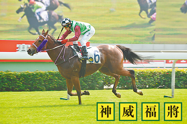 「神威福將」出戰田草千六米,最近由柏寶在五班兩勝後,現升上四班作賽,目前狀態依然保持勇境,今次轉手由雷神操刀,只負輕磅列陣,有權締造三連霸佳績。最後兩駒是「飛霞」及「財歡笑」,兩匹五班馬,前者跑一千米直路賽,後駒跑田草千六米,近況以「財歡笑」較佳,有力打開勝門。