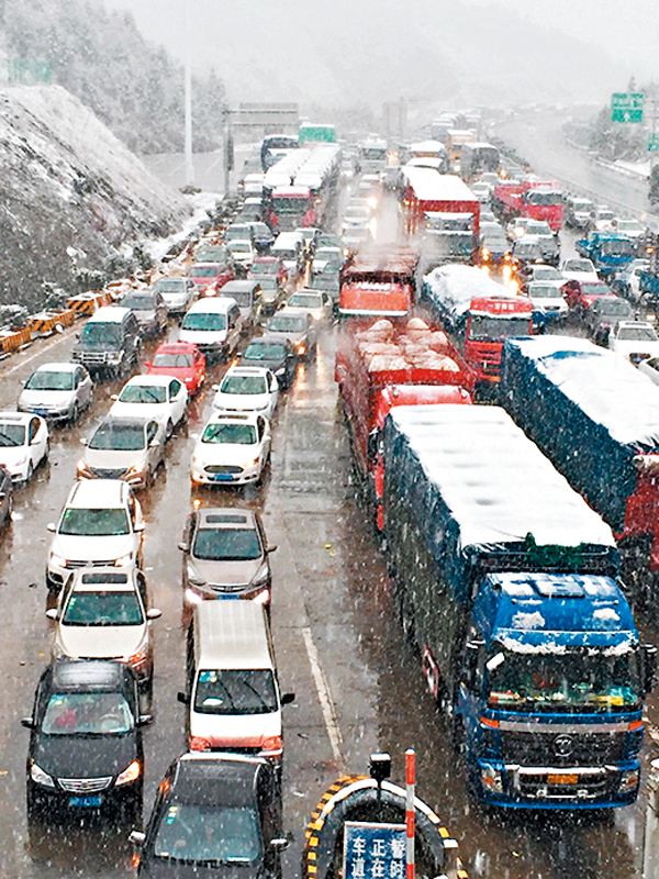 ■江西省境內多條高速出現嚴重擁堵。 中新社