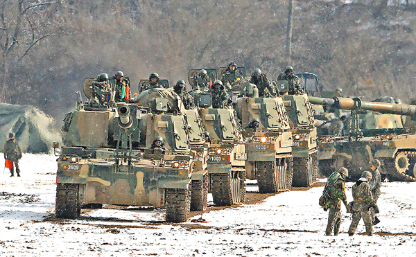 ■韓軍在與朝接壤邊境以K9自行火炮演習。美聯社
