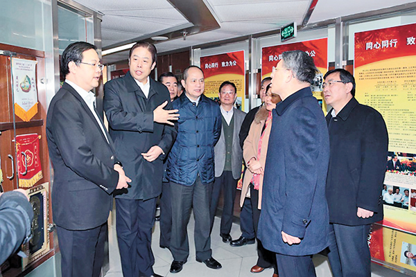■吳志明(左二)走訪民主黨派市委、市工商聯及有關團體。 網上圖片