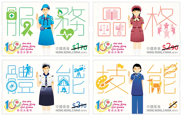 香港郵政昨日指出,香港女童軍一直致力為本地女童及青年女士提供發展潛能機會,通過不同訓練及活動,讓她們成為有責任感的世界公民。而本港第一隊女童軍於1916年成立,為慶祝今年成立100周年,香港郵政遂特別發行紀念郵票。