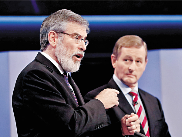 ■新芬黨黨魁(左)與愛爾蘭總理肯尼出席電視辯論。 法新社