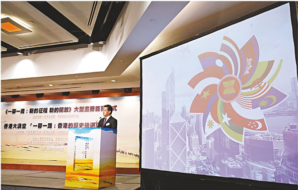 ■預算案有專門篇章談及「一帶一路」。圖為《一帶一路:新的征程 新的開放》大型畫冊首發儀式。 資料圖片