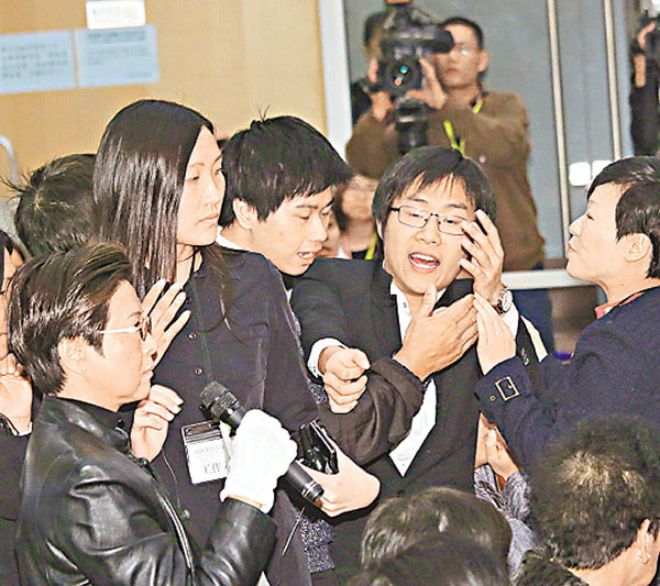 ■社民連黃浩銘(右二)搞事,被逐離場。 彭子文 攝