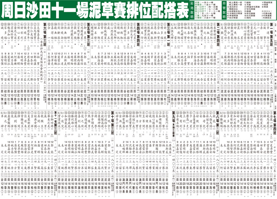周日沙田十一場泥草賽排位配搭表 (2016-03-04) (圖)
