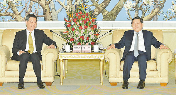 ■行政長官梁振英昨於北京與國家互聯網信息辦公室主任魯煒會面。