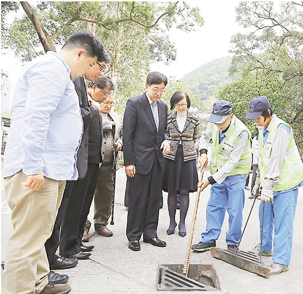食物及衛生局局長高永文昨日下午到訪沙田,視察食物環境衛生署在山廈圍村的滅蚊工作。