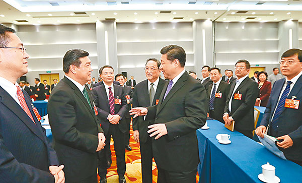 ■習近平看望參加全國政協十二屆四次會議的民建、工商聯委員。新華社
