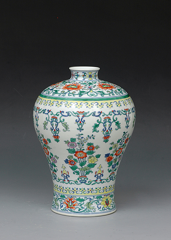由黃雲鵬領銜燒造的《故宮十大珍寶瓷》之一--「仿清雍正斗彩折枝花紋梅瓶」。