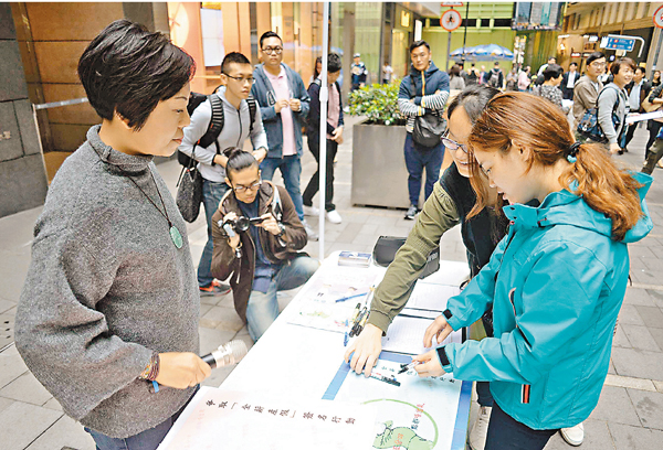 工聯會婦女事務委員會由去年12月起舉辦簽名活動,促請政府修訂現行《僱傭條例》,將五分之四的產假薪酬增加至「全薪」,至今獲得超過5,000名市民響應,有關簽名將遞交予勞工處處長。工聯會立法會議員麥美娟及郭偉強昨日均有出席活動,呼籲市民簽名。