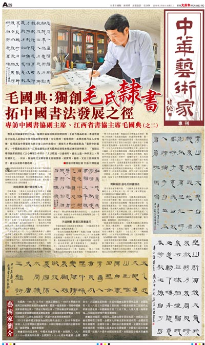 毛國典:獨創毛氏隸書 拓中國書法發展之徑 (2016-03-09) (圖)