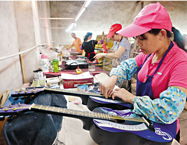 ■廣西在粵農民工中,有返鄉就業打算的佔56.55%。圖為廣西昭平返鄉農民工在當地工廠就業。 資料圖片