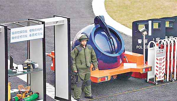 這批安保裝備包括安檢、搜爆排爆、單警防護等設備用具以及警用車輛。記者在現場看到最新型的防暴和移動式防彈盾牌、爆炸物探測儀,還有通道式X光機、身份證檢測儀,以及作為交通巡查用的警用平衡車。
