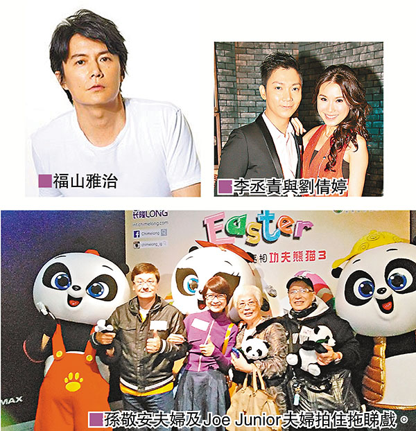廣州長隆動物園的三胞胎「萌萌」、「帥帥」、「酷酷」的三胞胎身份出現在《功夫熊貓3》中,前晚長隆請一班小朋友及家長睇戲,多位藝人,林子博、石修、Joe Junior夫婦等出席,而三胞胎的人型公仔亦到戲院和觀眾拍照,十分可愛。現場抽獎,中獎小朋友都有熊貓公仔!馬天尼老闆孫敬安及大律師妻子盧敏儀(Money)都出席,Money工作太忙都有一段時間沒有拍拖睇戲,她說工作忙兼工作狂,老公叫她一起去歐洲睇波都沒有去,孫敬安就算投訴都無辦法,他體諒太太的工作。