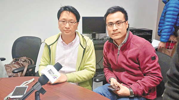 ■工聯會立法會議員鄧家彪及郭偉強昨日與房屋署代表會面,了解房署的招標程序。 鄺慧敏 攝