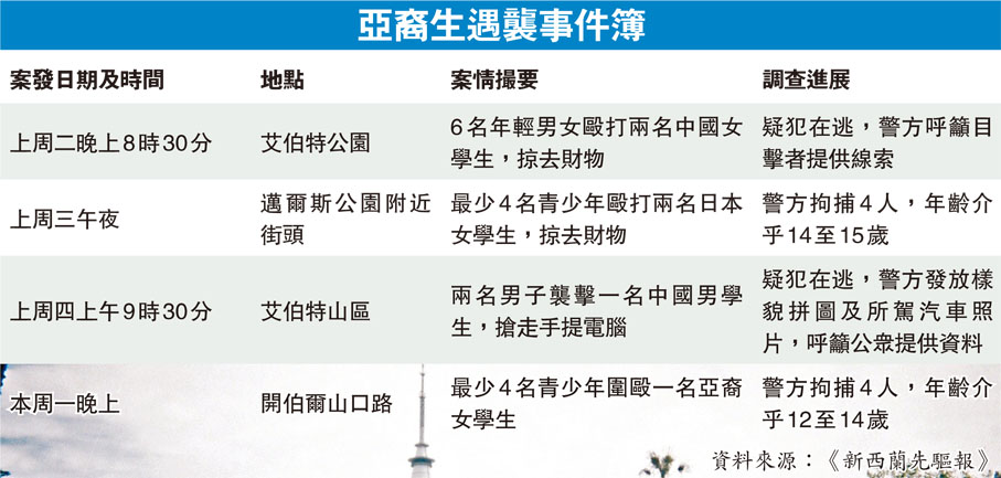 奧克蘭亞裔生遭連環毆劫 1周4宗襲擊掀恐慌