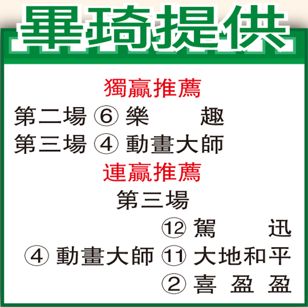 「活潑飛揚」助手彭福公園踱一圈,扣實韁繩而馳,馬身結實毛色立立令,火氣旺盛,勇態冒起。