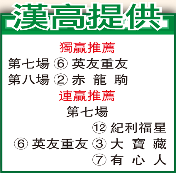 「英友重友」助手踱一圈,走來躍躍欲試,全程扣實,步大力雄,火氣冒升,狀態已見蒸蒸日上。