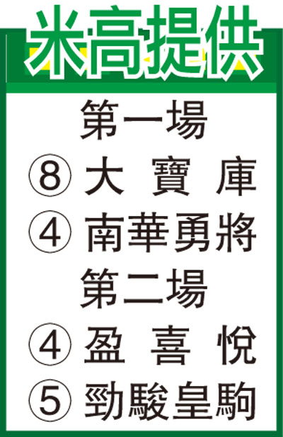 第一場、第五班、一六五○米。「大寶庫」唯一頭馬乃季初勝出同程,其後在田草亦一再上名,近仗表現回落有存心減分之嫌,上仗轉戰泥地跑包尾,剛好減分至上勝時水平,復課試谷閘得第二表現出色,亦屬開季後唯一試閘工夫,從準備已顯戰意,值得留意。「南華勇將」季內三捷全在同班同程,近仗因需時適應評分加幅,以及一再抽到外檔,未見再進不必過早灰心,抖夠後今仗再上征途,兼且換上蔣嘉琦減十磅助力甚大,可爭取四捷。