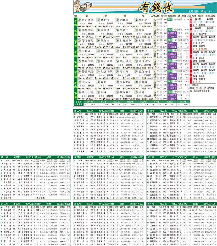 練馬師出賽馬及成績表 (2016-03-31) (圖)