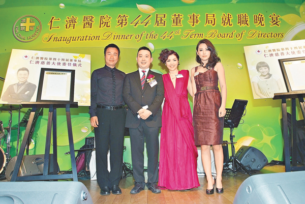 ■李文斌伉儷(中)於仁濟醫院董事局就職晚宴上。