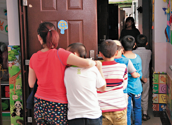 ■內蒙古呼市一孤獨症兒童訓練中心老師帶領學生集體參加訓練課程。 實習記者圖們 攝