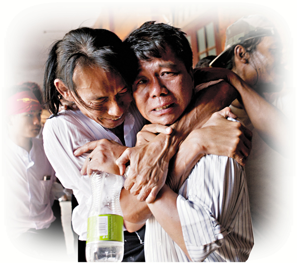 ■有獲釋的學生擁抱家人時不禁流淚。法新社