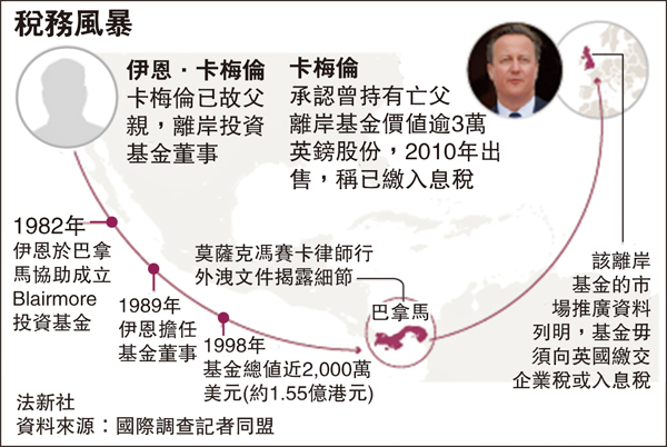 周一 記者查詢卡梅倫女發言人,她能否證實卡梅倫家族沒有資金仍投資於其亡父離岸基金,女發言人稱這是「私事」。