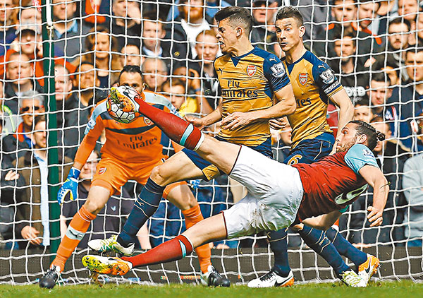 阿仙奴昨晚英超足球聯賽領先兩球下竟遭反先,最終驚濤駭浪下作客逼和「槌仔幫」韋斯咸3:3。再失2分的「兵工廠」雖留守聯賽榜第3,但32戰積59分的成績已遠遠落後於32戰積69分的李斯特城,最後6場要追回這10分機會已極渺茫,今季幾可肯定無冠收場。