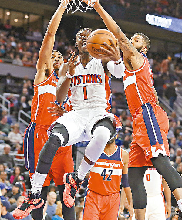 美職籃NBA,底特律活塞控衛烈治積遜未讓球隊失望,他昨天攻下39分,率隊以112:99主場擊敗巫師,讓活塞重拾7年來首個季後賽席位。