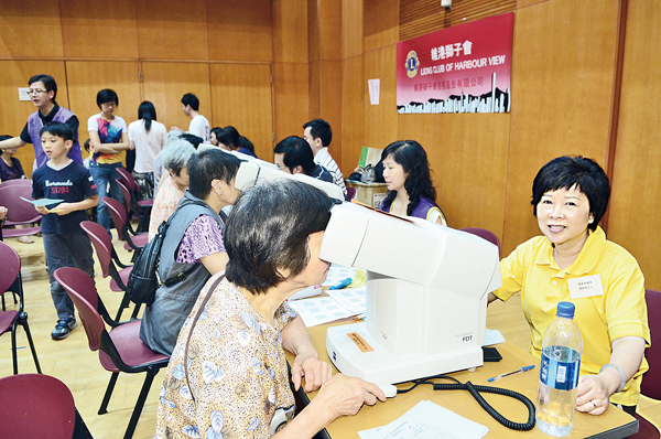■馮翠屏(右)參與維港獅子會驗眼活動。 網上圖片