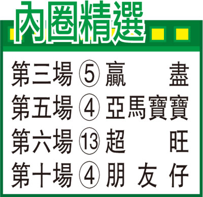 「亞馬寶寶」助手踱一圈,扣韁完成,步伐急密,收身恰到好處,埋門見狀態已走出谷底,今次有備而來,應有更進一步演出。