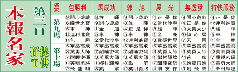 本報名家第三口孖T提供