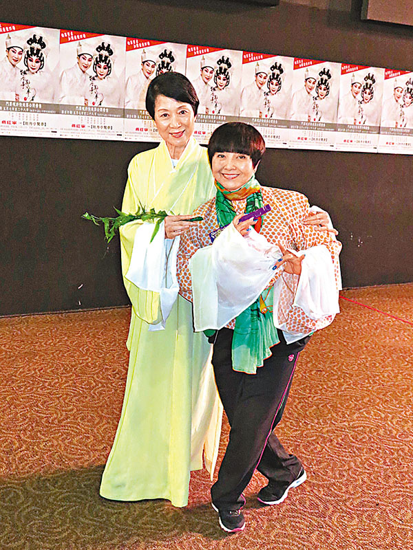 香港文匯報訊(記者 李慶全)陳寶珠與梅雪詩(阿嗲)合演任白戲寶《牡丹亭驚夢》,將於5月7日至28日假灣仔演藝學院演出,昨日進行綵排其中一節《遊園驚夢》,二人已經相當合拍。