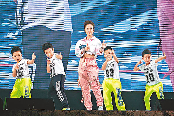 ■Kay與囝囝張瞻(左)等在台上大跳街舞。