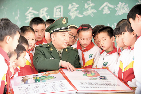 安徽省合肥市瑤海區銅陵路街道聯合轄區蚌埠路第三小學,近日開展國家安全教育進校園活動。圖為專職人武幹部為學生們講解國家安全知識。 ■文:記者 趙臣、通訊員 解琛 合肥報道 / 圖:本報安徽傳真