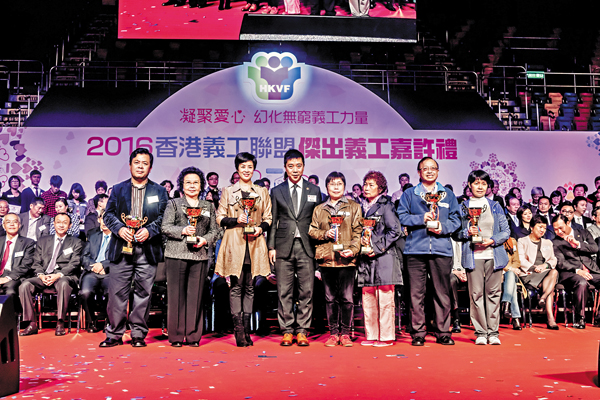 ■馬浩文(右五)為傑出義工頒獎。