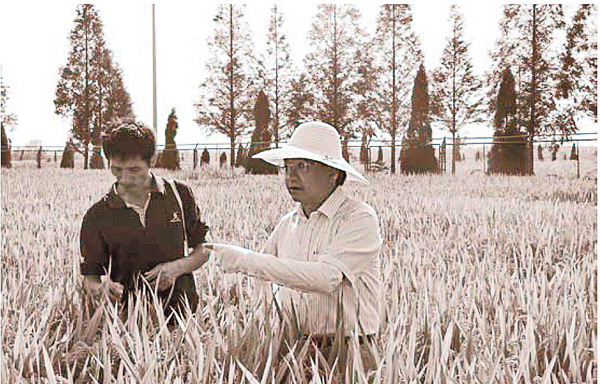 ■萬建民(右)在試驗田工作。 本報北京傳真