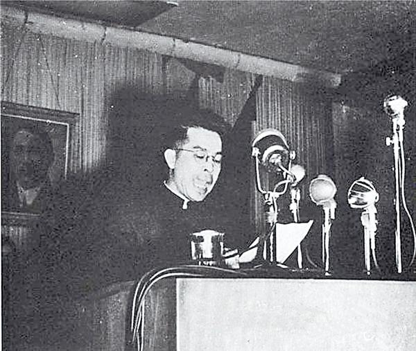 ■中國人民救國會代表沙千里在新政協會上發言。資料圖片