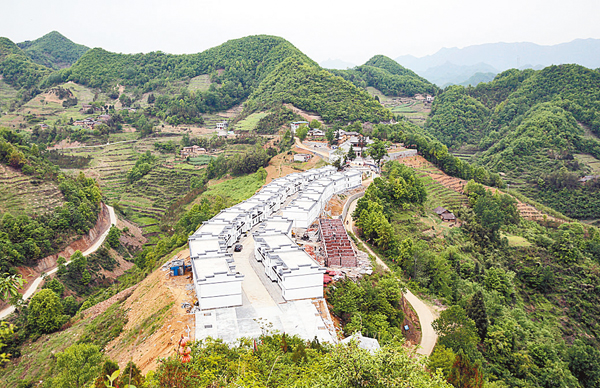 ■陝西紫陽縣蒿坪鎮黃金村安置點全貌。據悉,陝西省「十三五」期間扶貧搬遷工作計劃投資1,320億元,將實施易地扶貧搬遷66萬戶235萬人。 新華社
