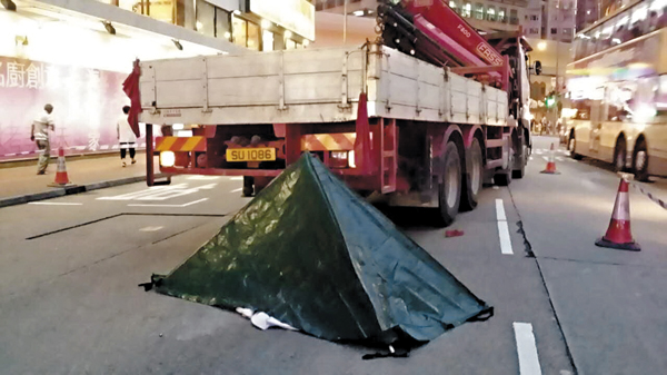 香港文匯報訊(記者 杜法祖)繼前日接連發生兩宗重型車輛輾斃老婦慘劇後,昨日再有一名八旬老婦於大角咀被吊臂貨車撞倒再輾過,當場重傷死亡,成為近一周內第四名「輪下亡魂」的長者。涉案貨車司機涉「危險駕駛導致他人死亡」罪名被捕扣查。
